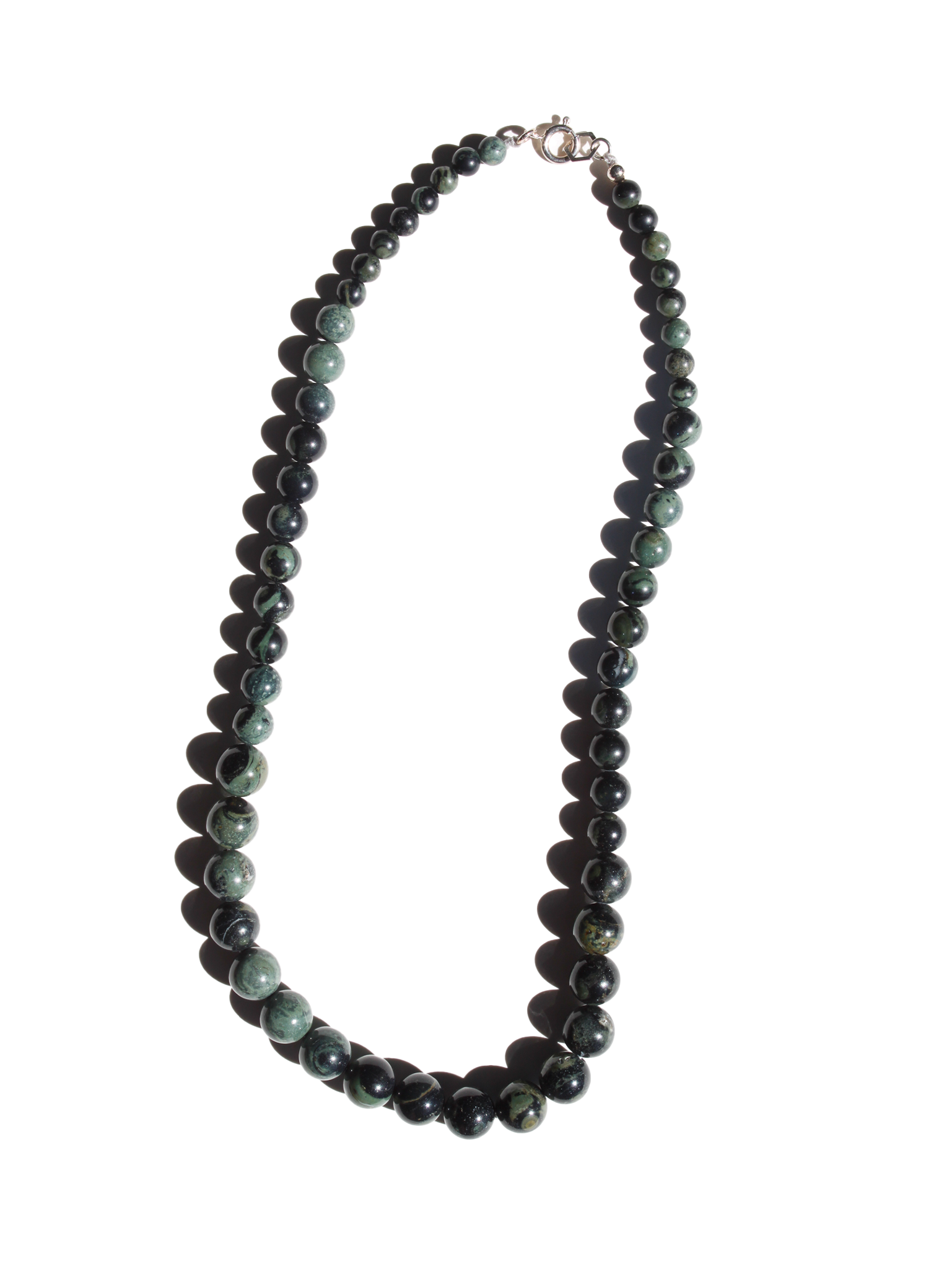 Kamamba Jasper necklace with graduated 6 to 10mm beads with Sterling Silver closure.